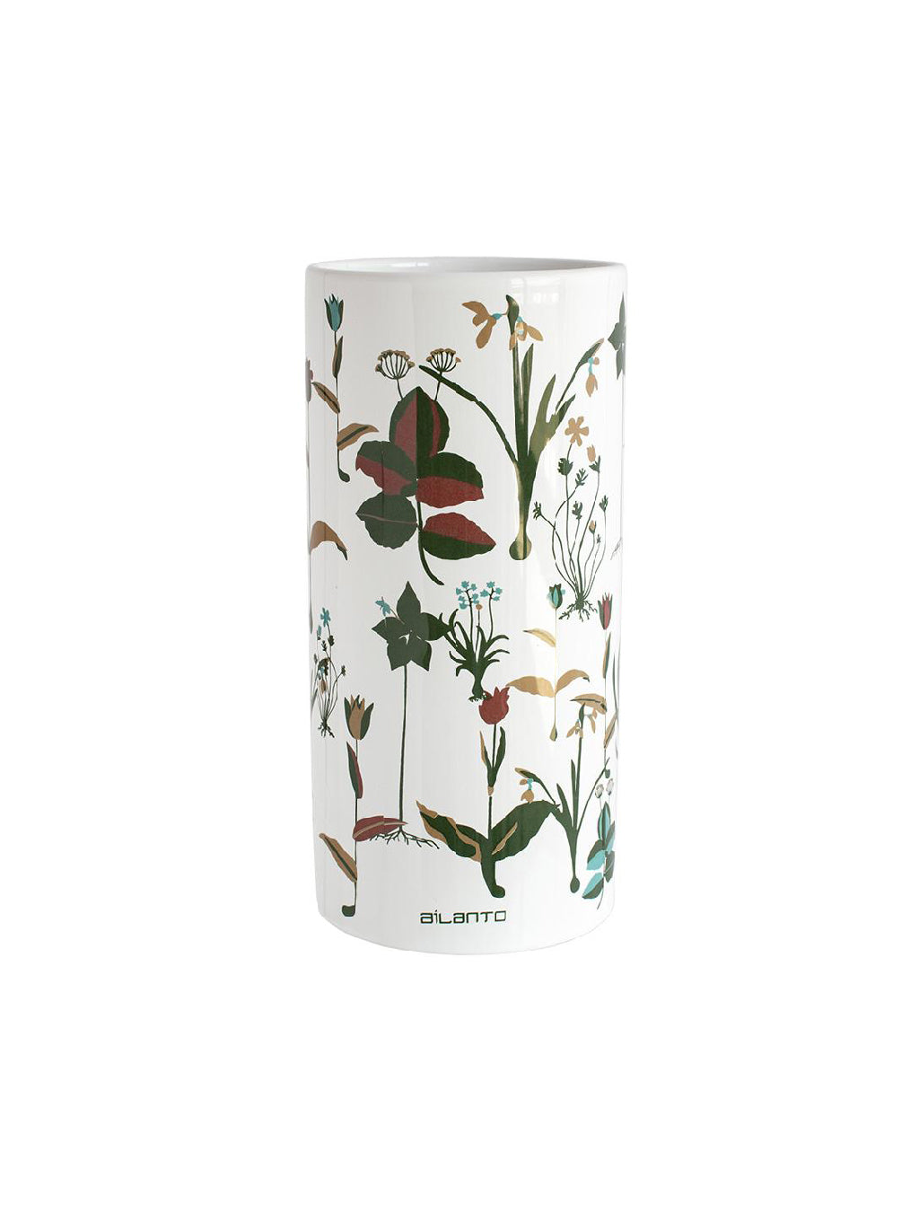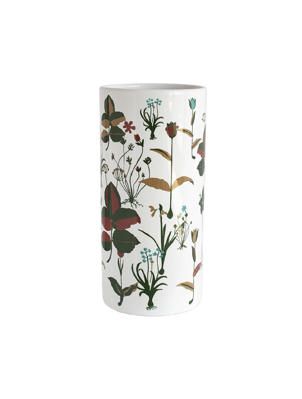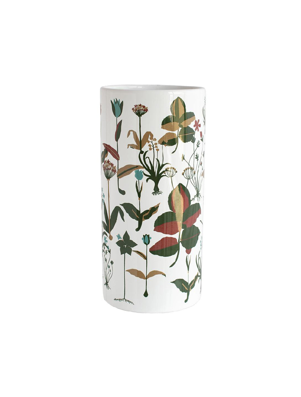 Jarrón cerámico de forma cilíndrica en estampado Bulbos.