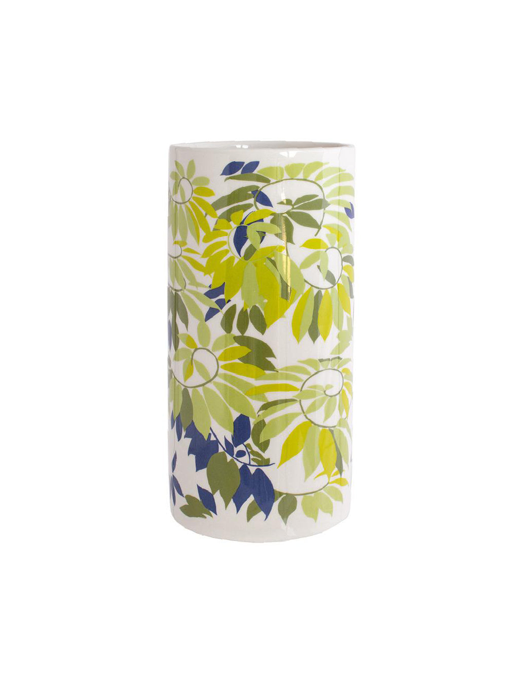 Jarrón cerámico de forma cilíndrica en estampado Helechos.