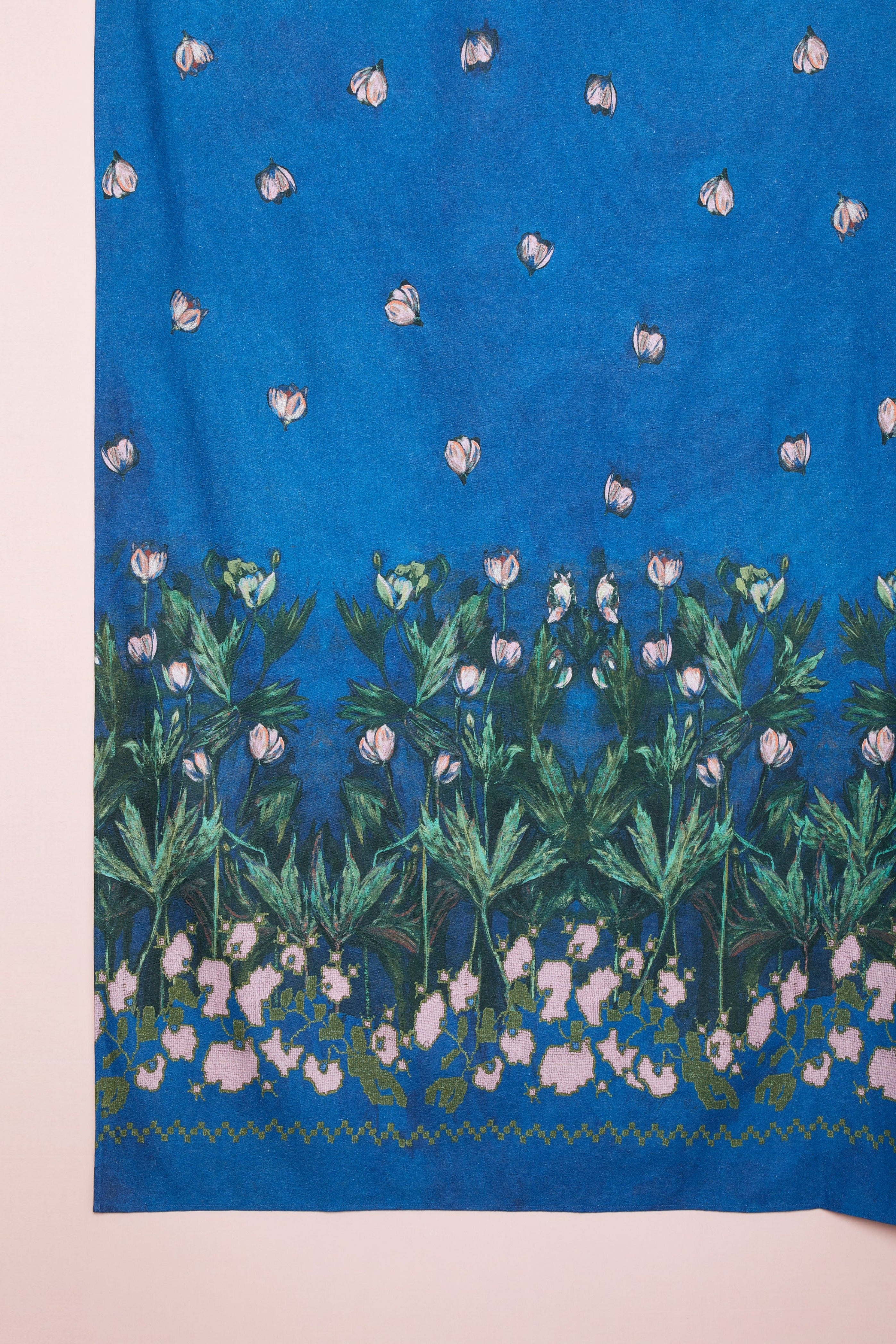 Mantel estampado "Anémonas Azul" en lino y algodón.