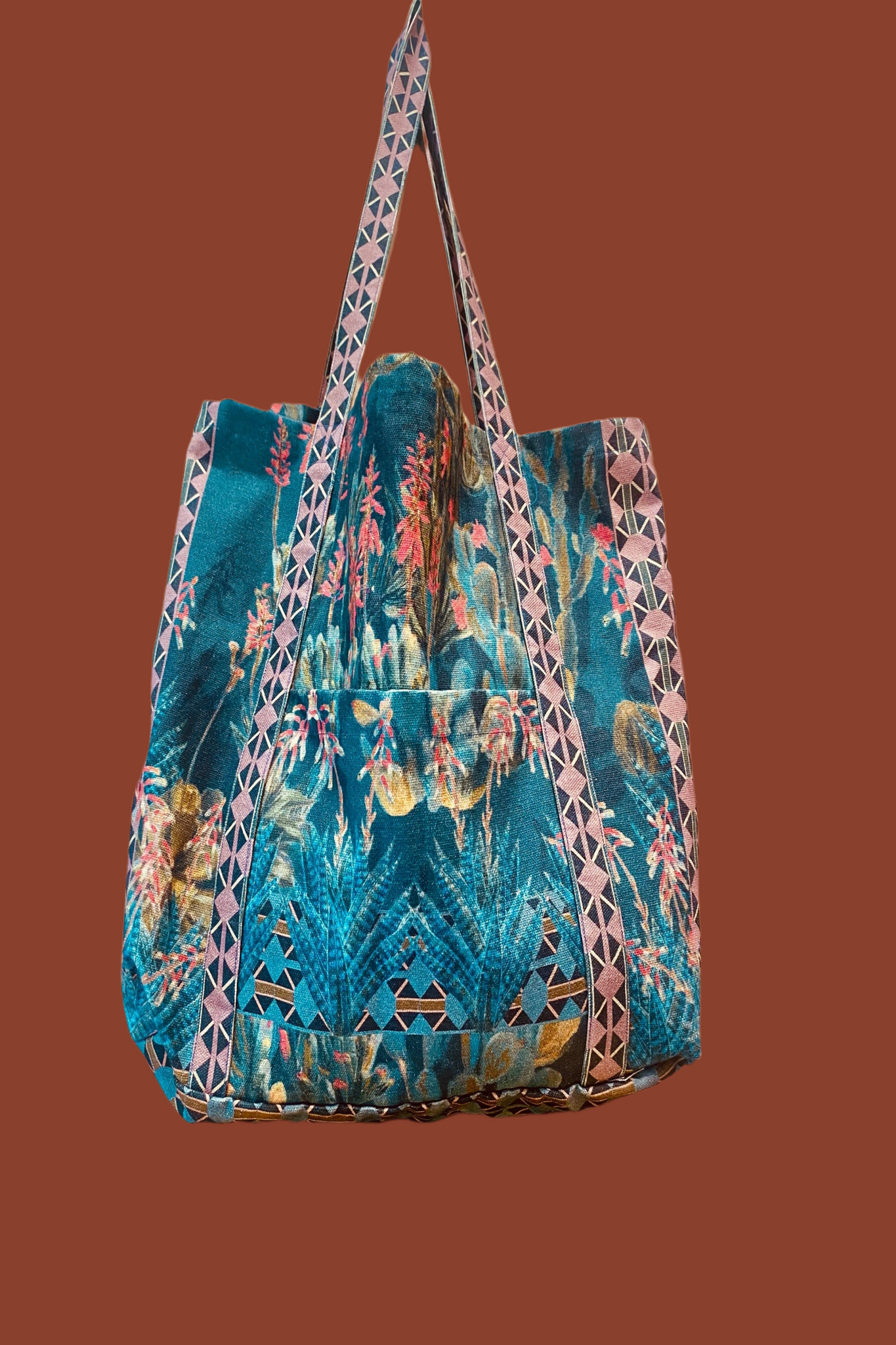 Bolso Granate Cyan de terciopelo, Estampado "Papel pintado"
