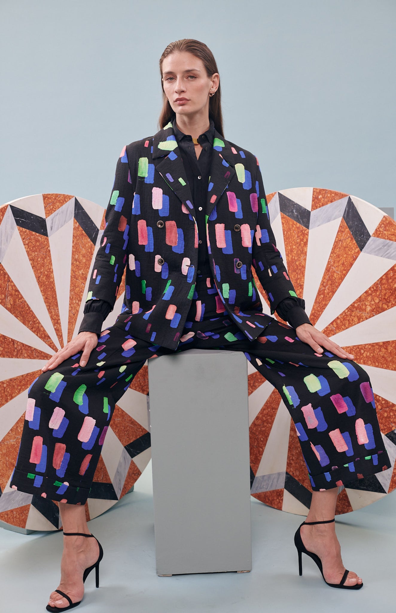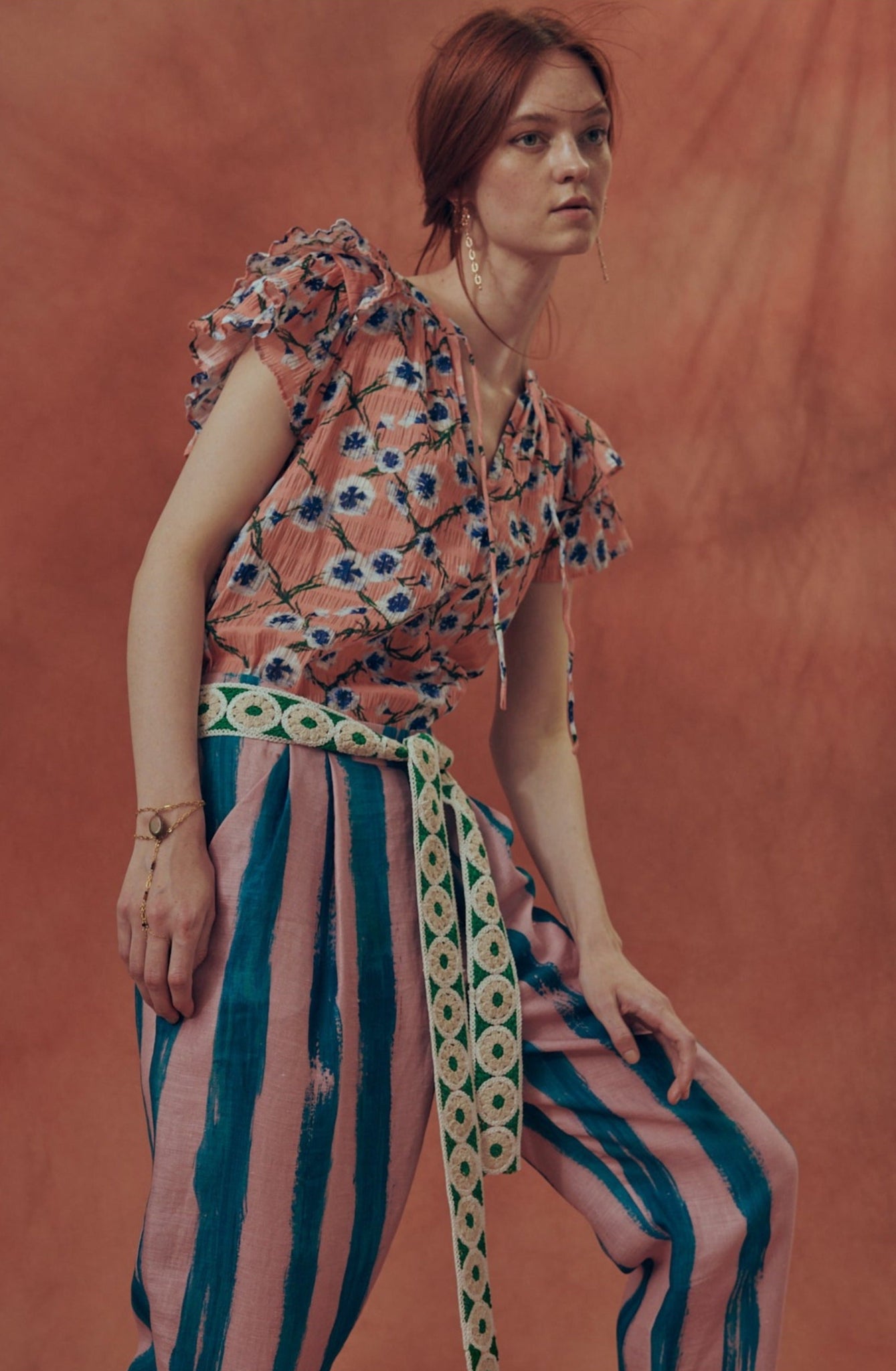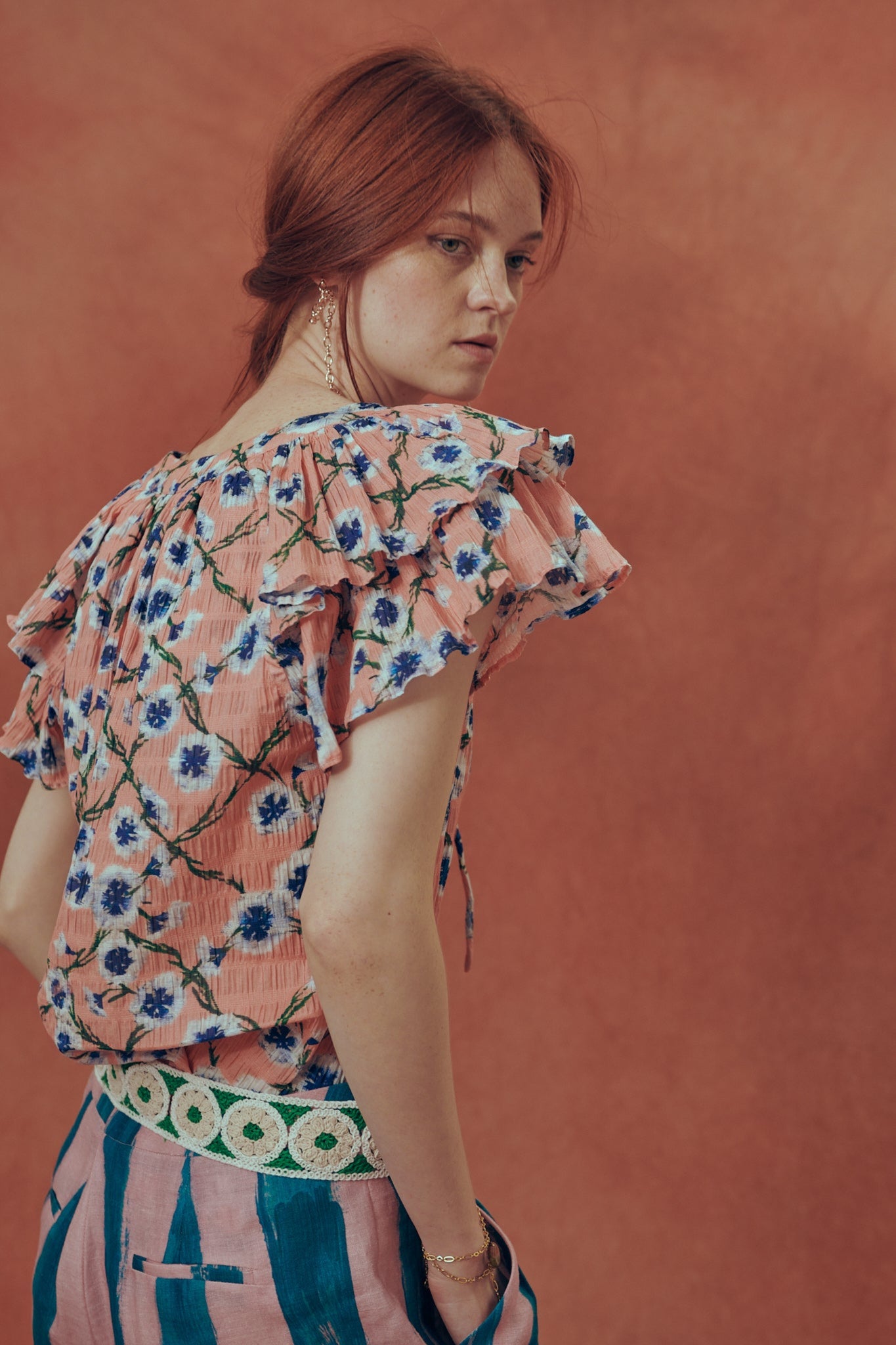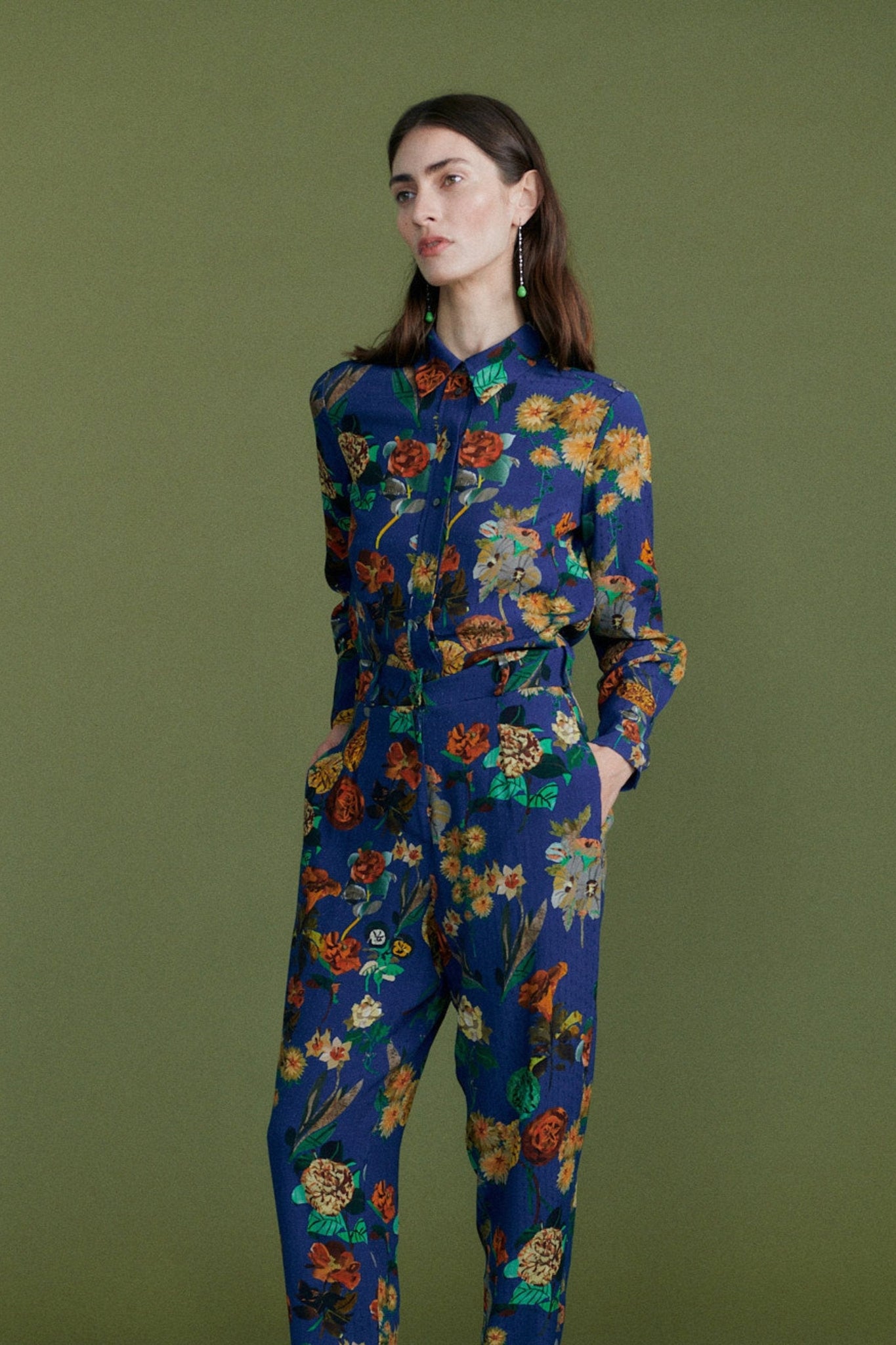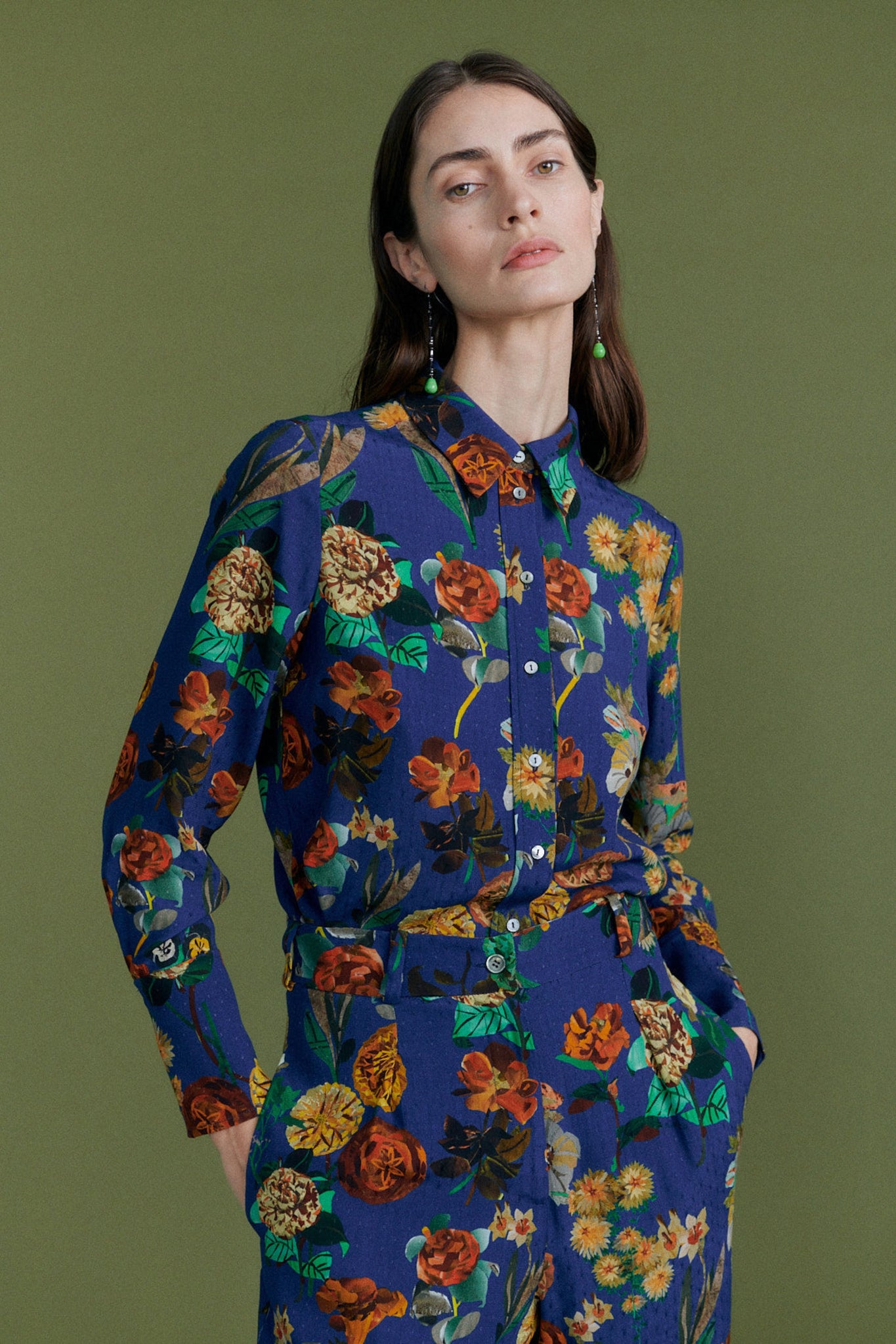 Blusa escote pico estampado "Golondrinas sobrevolando un lago"
