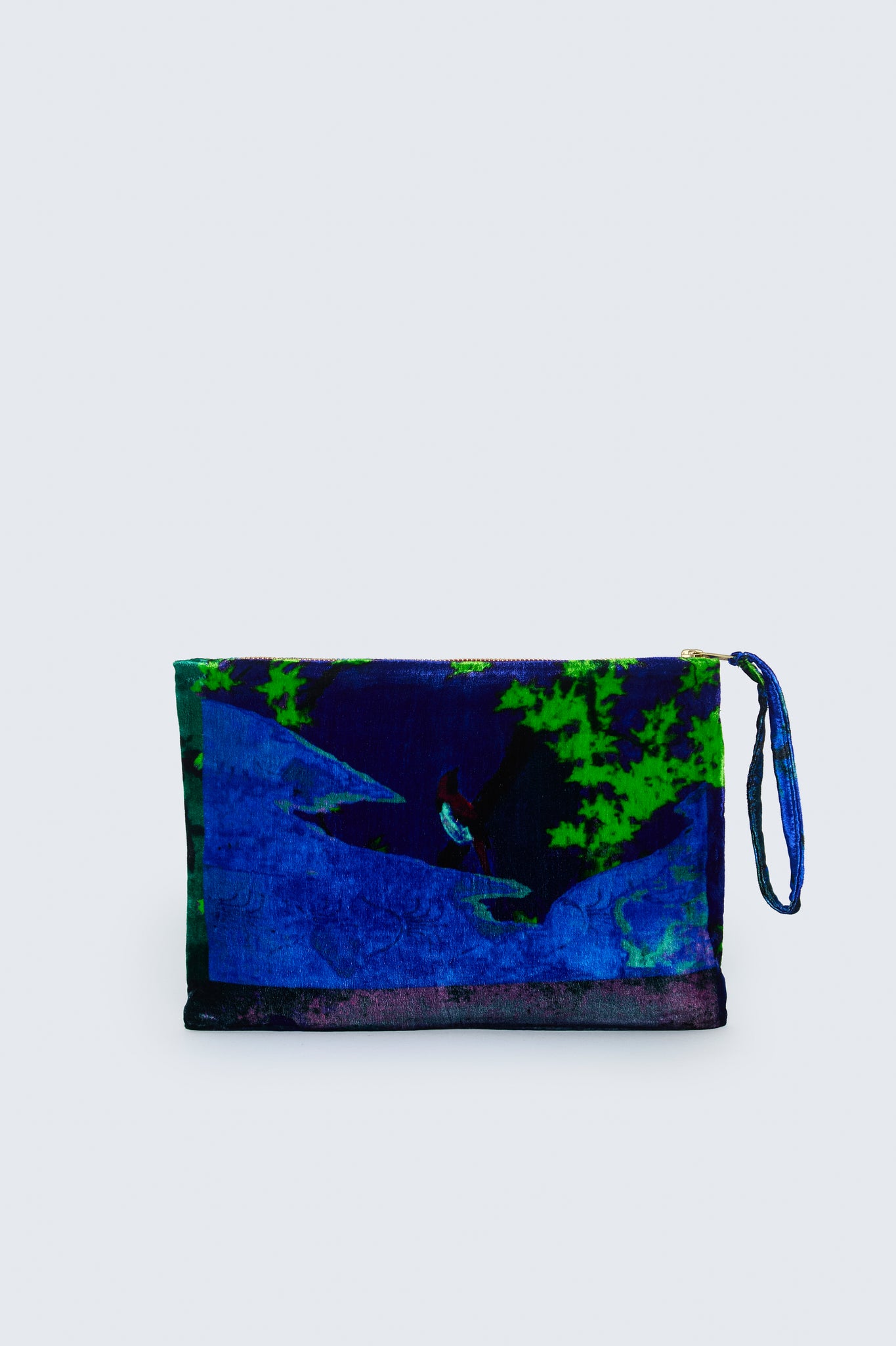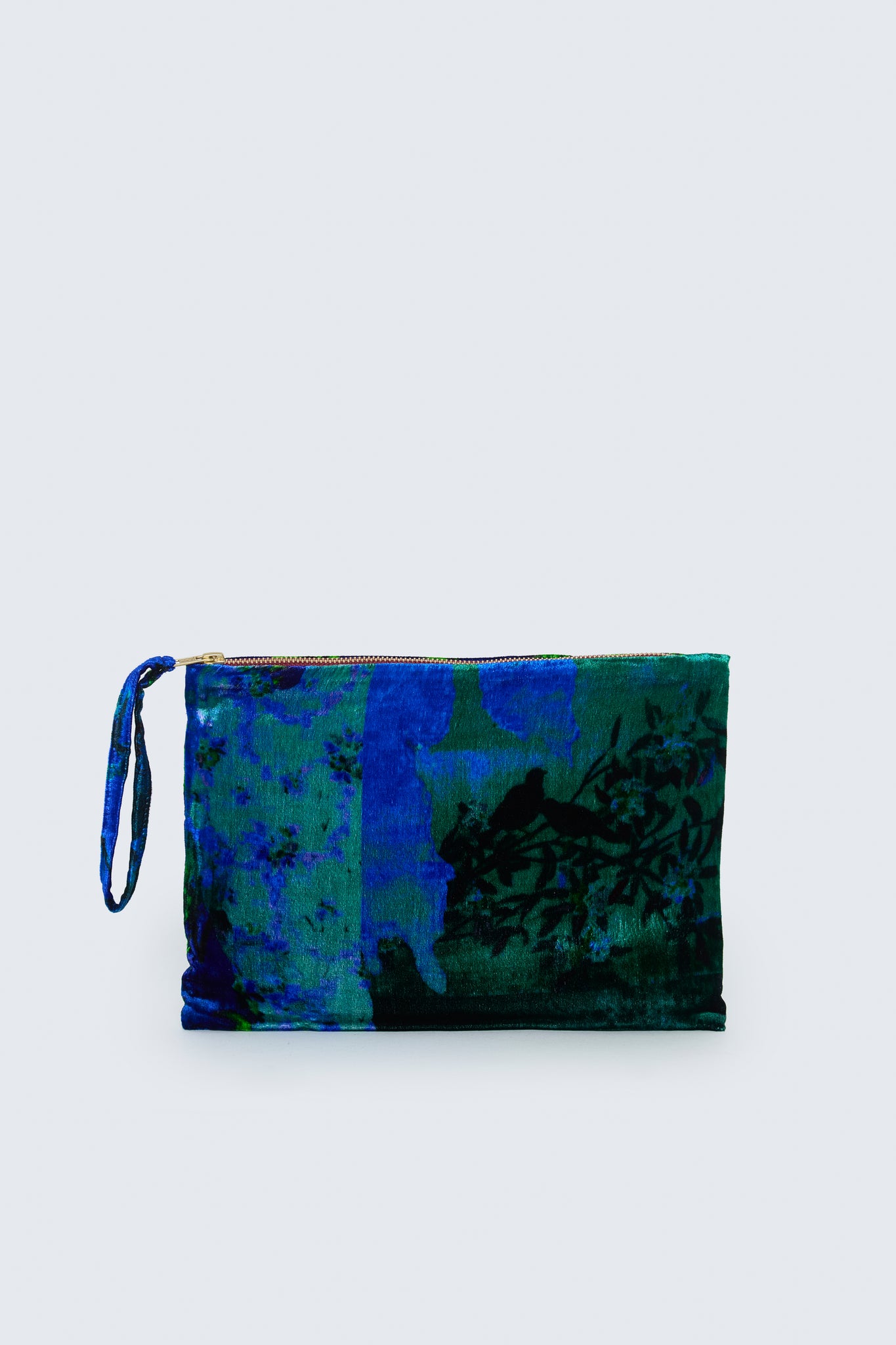 Bolso Azul de terciopelo, Estampado "Papel pintado"