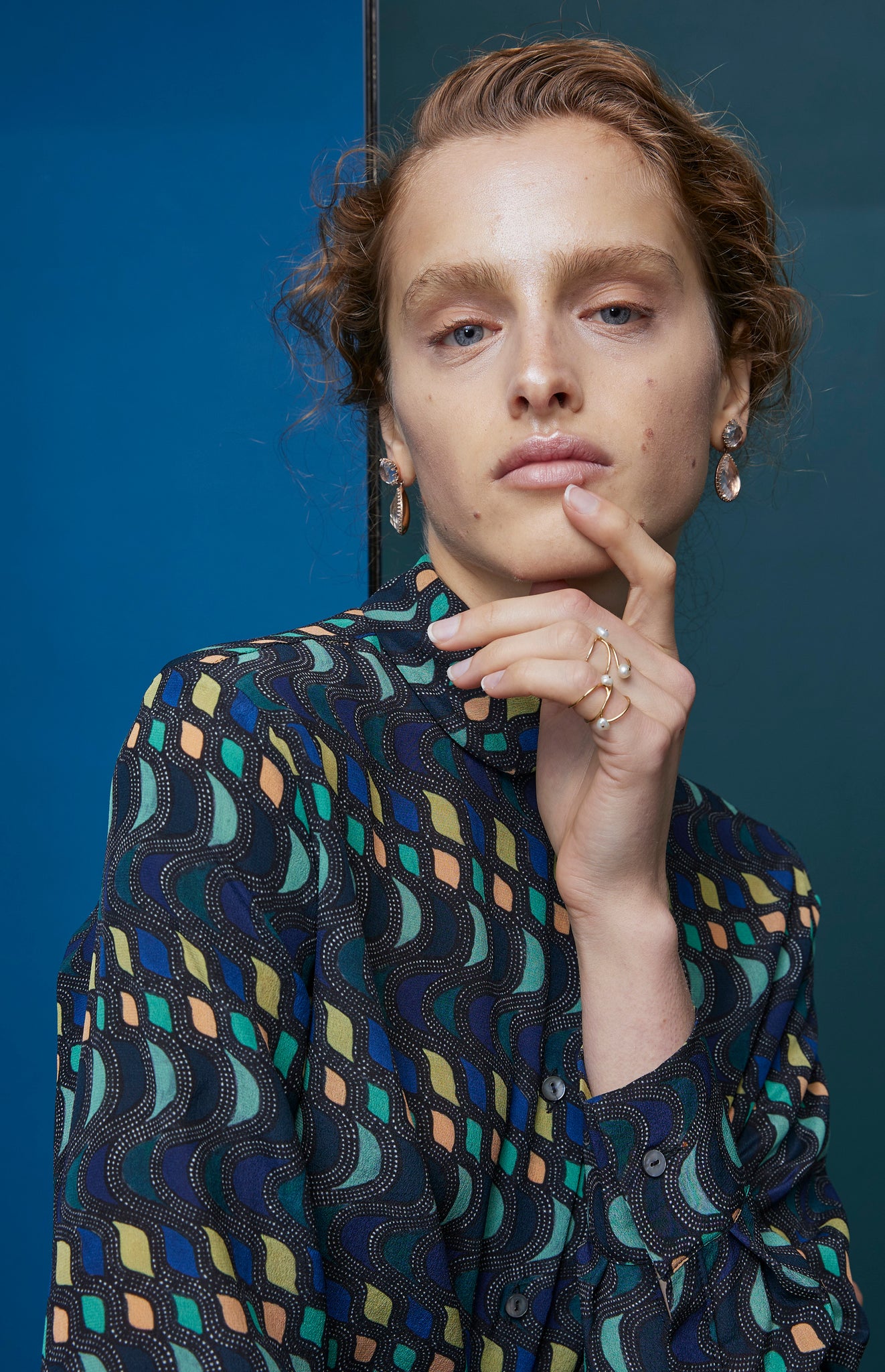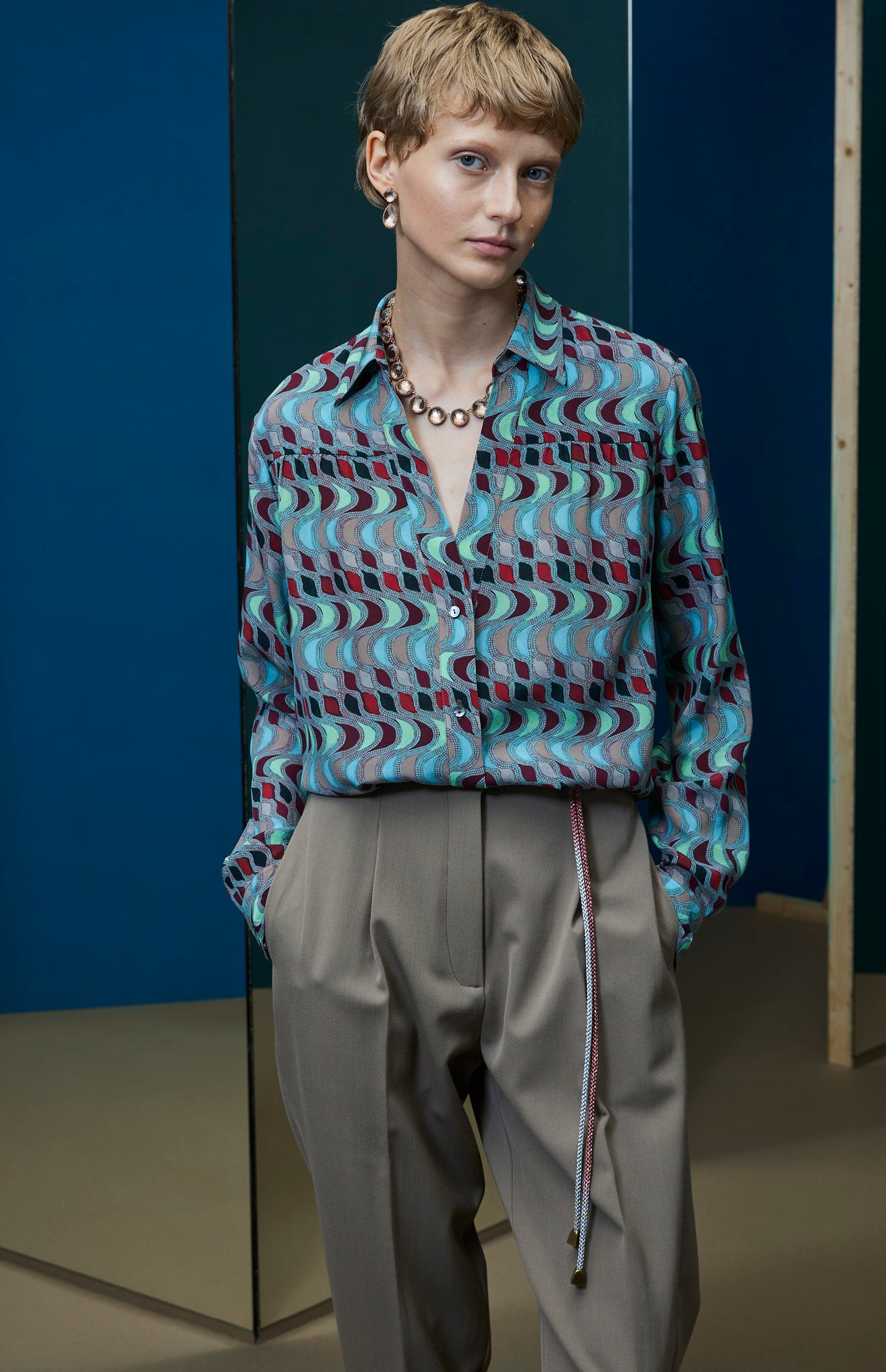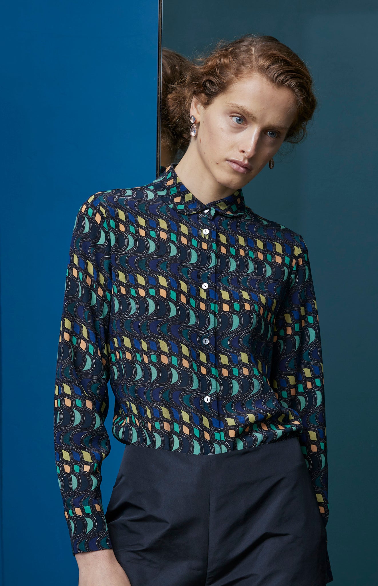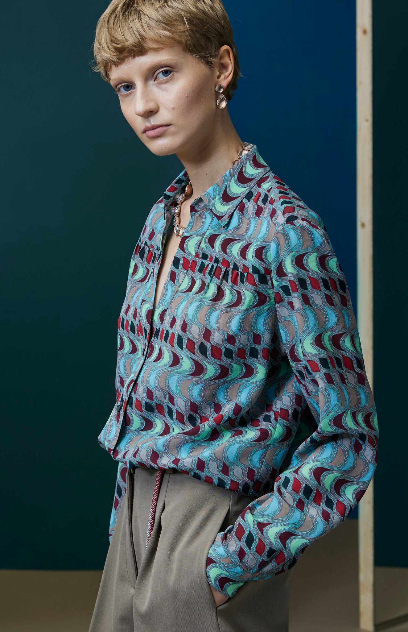 FW25-B001 Blusa en seda estampado "Geométrico"