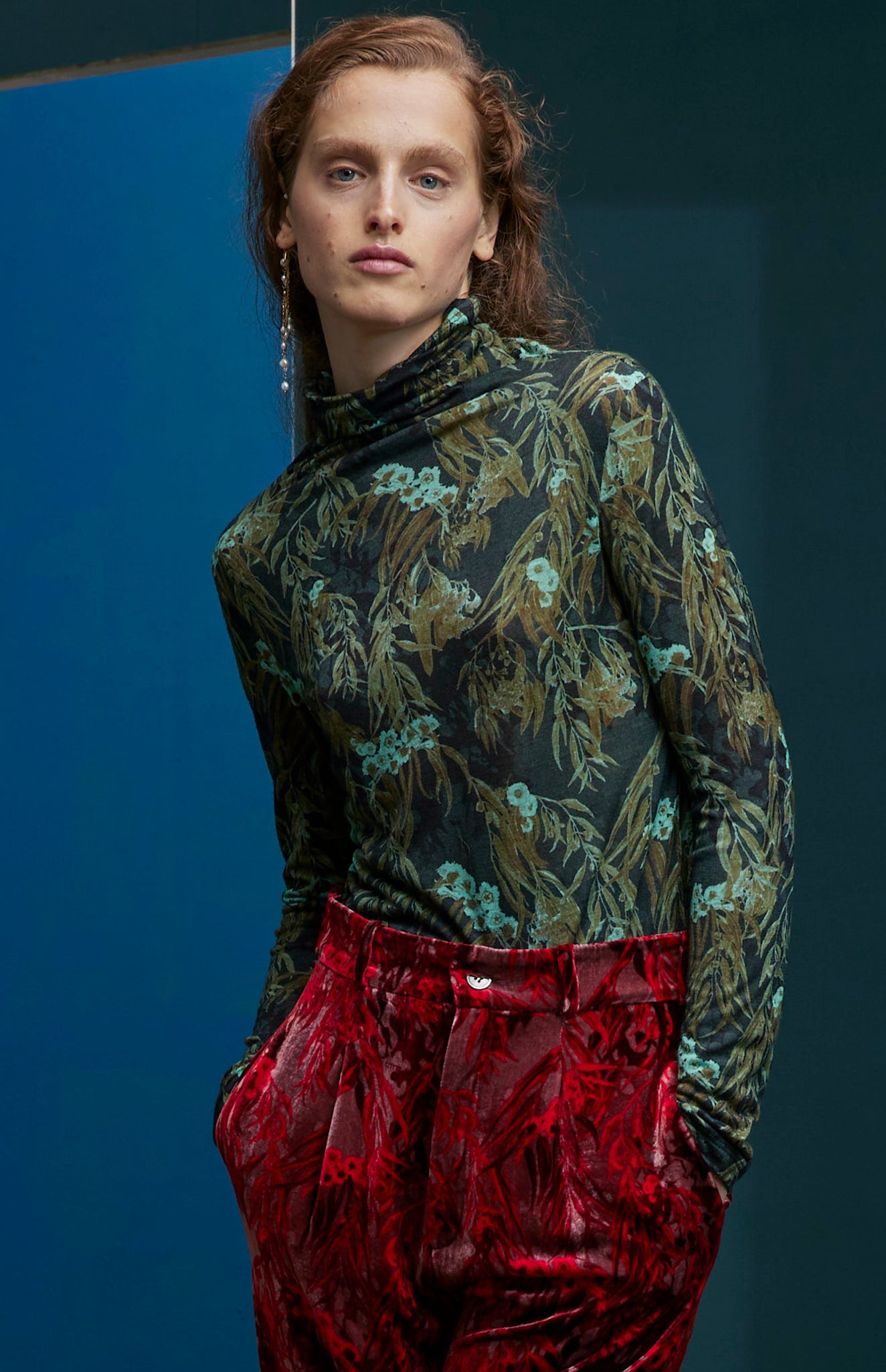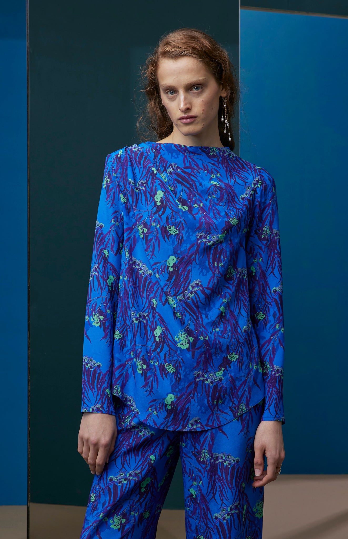 FW25-B018 Blusa escote barco estampado "Eucaliptos"