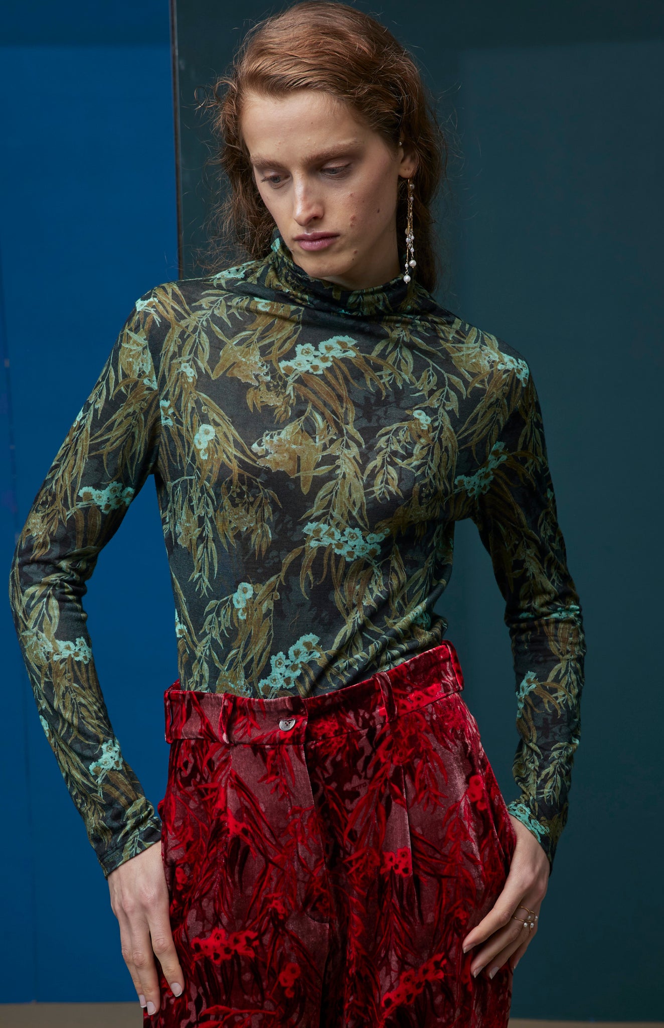 FW25-B021 Blusa de punto de lana estampado "Eucaliptos"