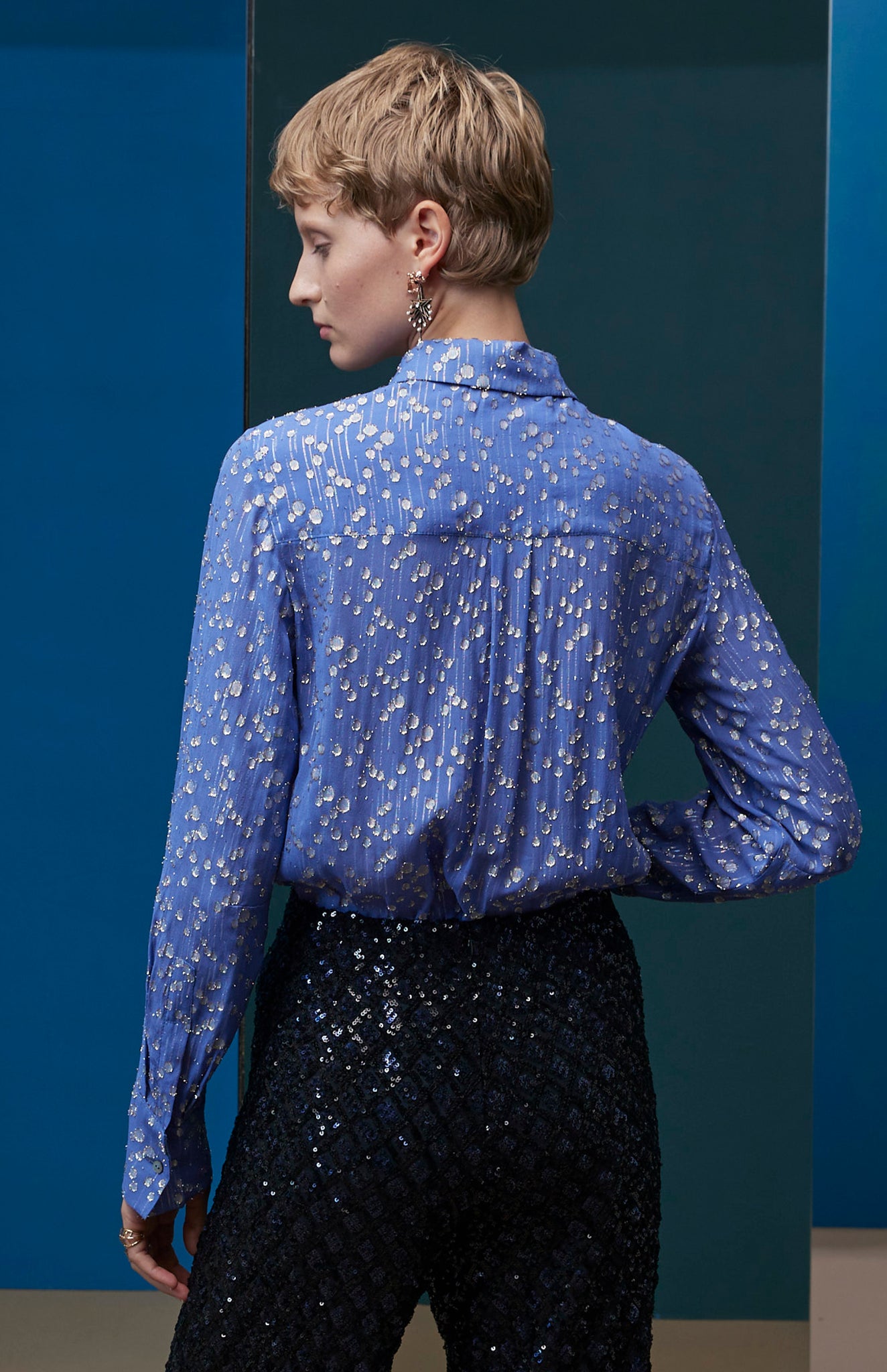 FW25-B022 Blusa cuello redondo jacquard plateado