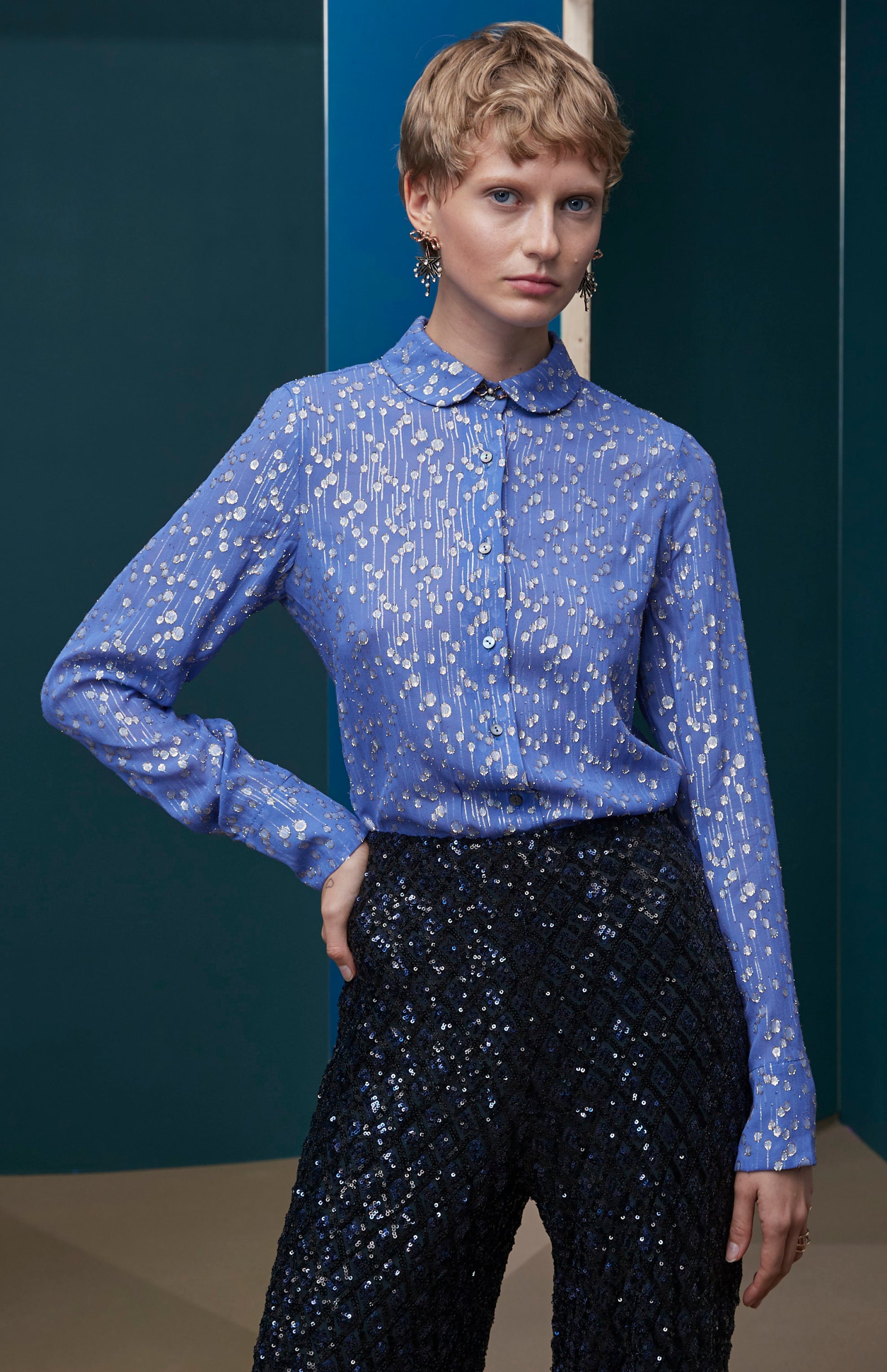 FW25-B022 Blusa cuello redondo jacquard plateado