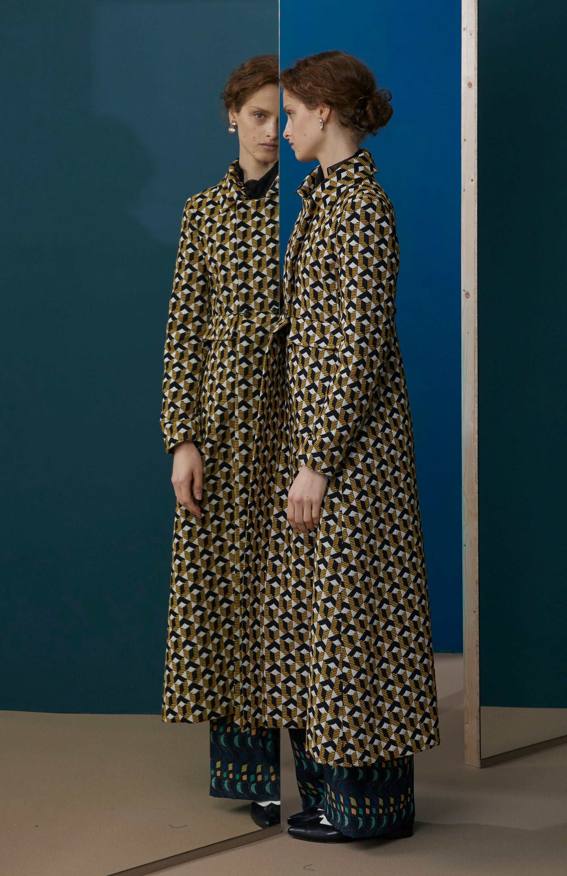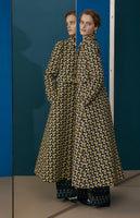 Abrigo en tejido Jacquard en dibujo geométrico.