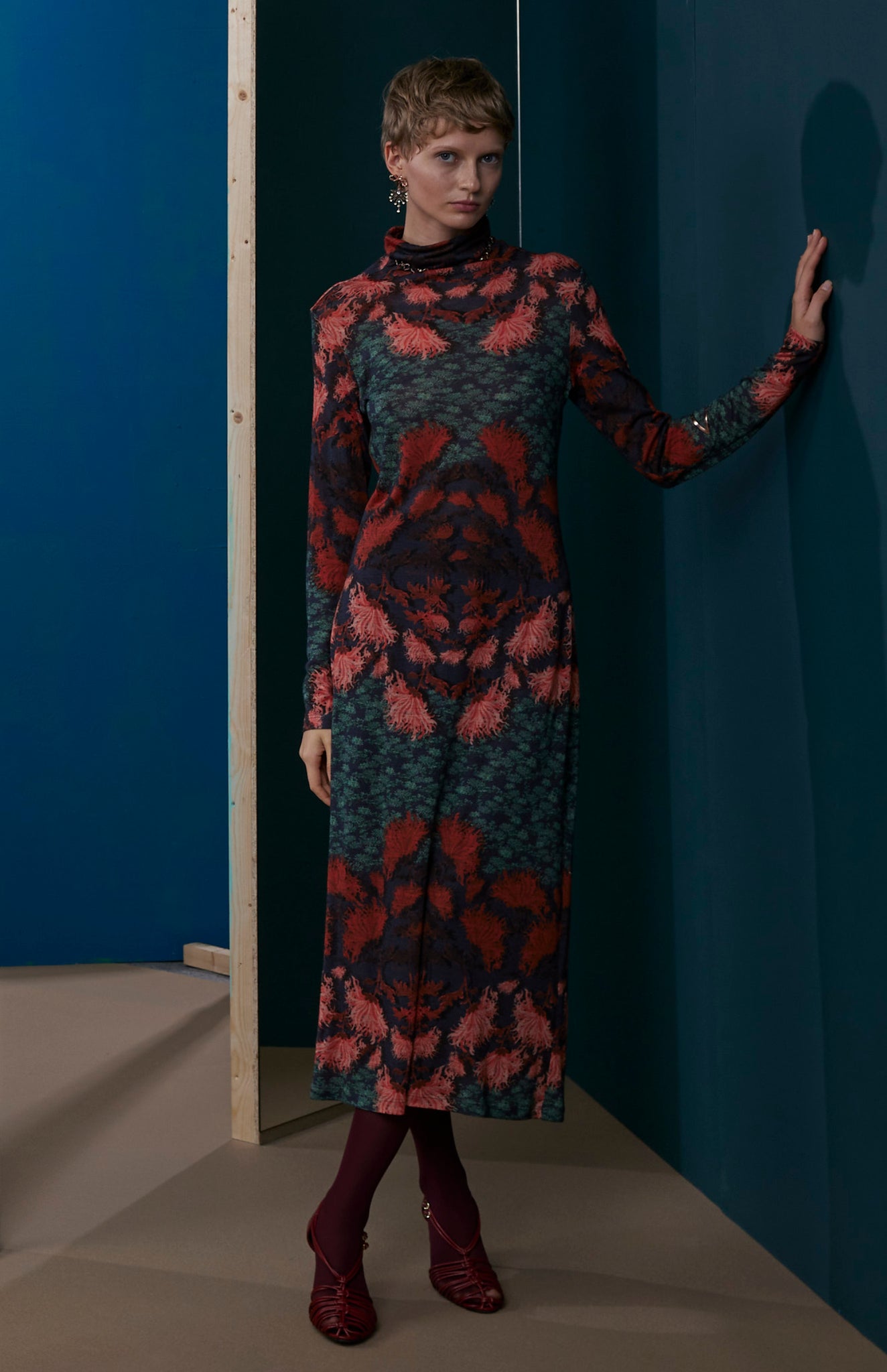 FW25-V020 Vestido de punto estampado “Crisantemos“