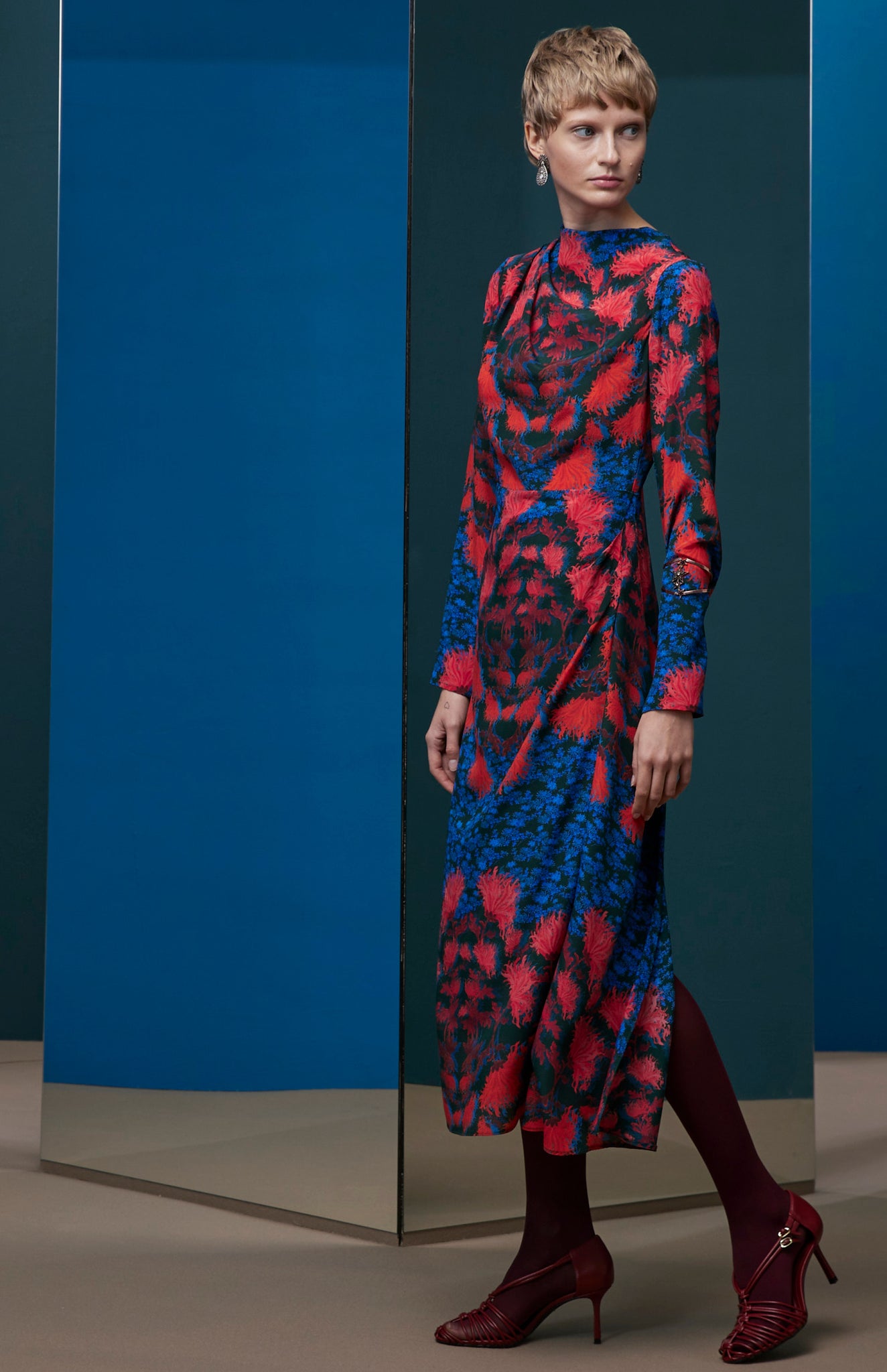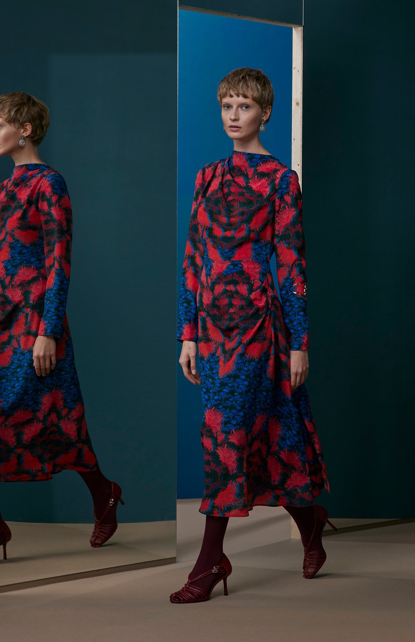 FW25-V021 Vestido recto con pliegue lateral estampado “Crisantemos”