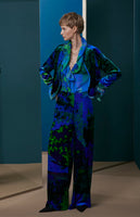 FW25-P010Blue Pantalón en terciopelo estampado "Papel pintado"