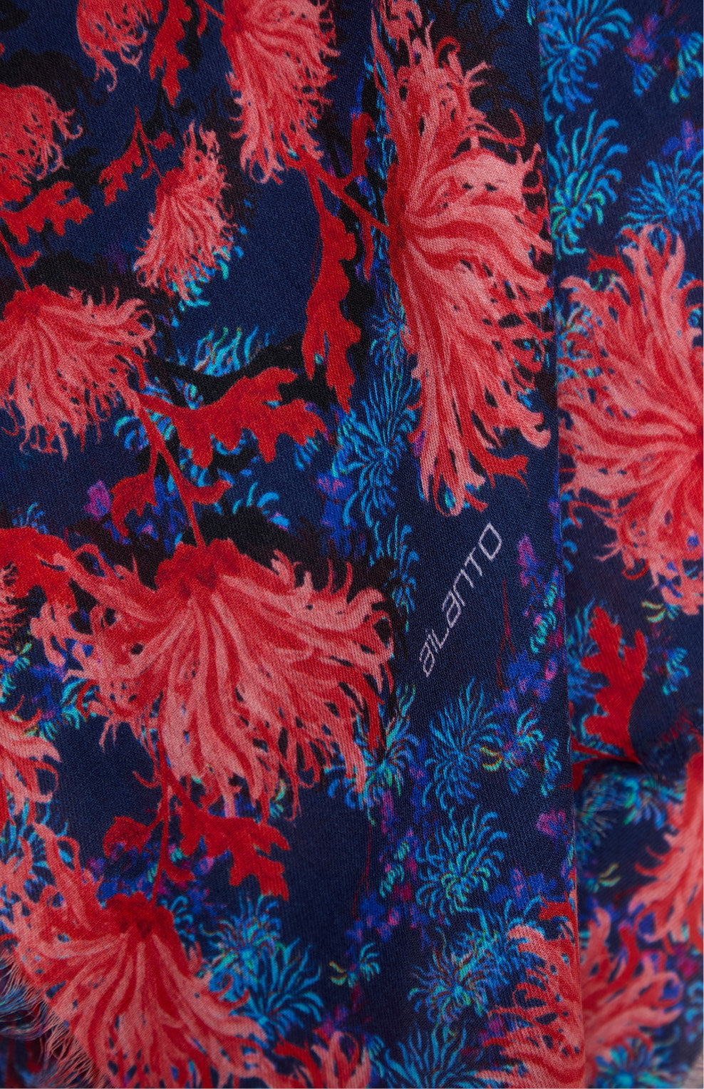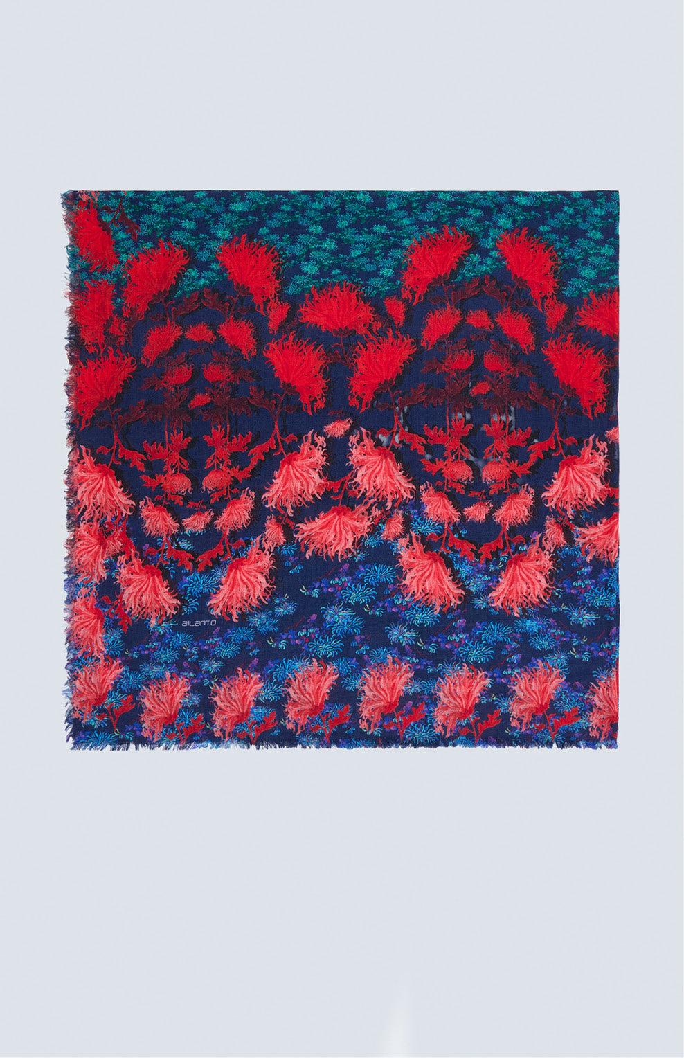 FW25 Pañuelo estampado "PÁJAROS SOBRE PAPEL PINTADO" Cyan Burgundy