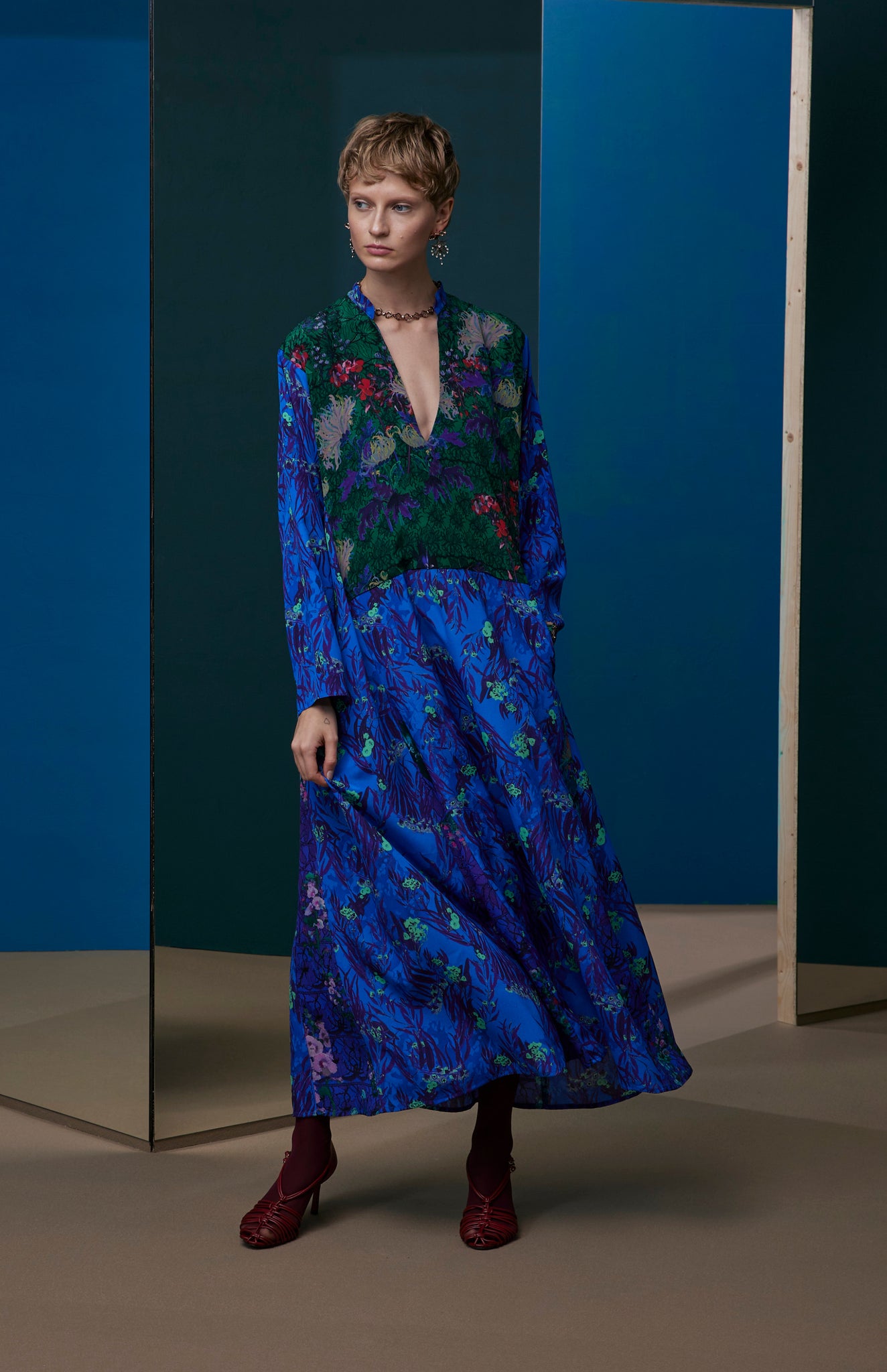 FW25-V014 Vestido en terciopelo estampado “Papel pintado”