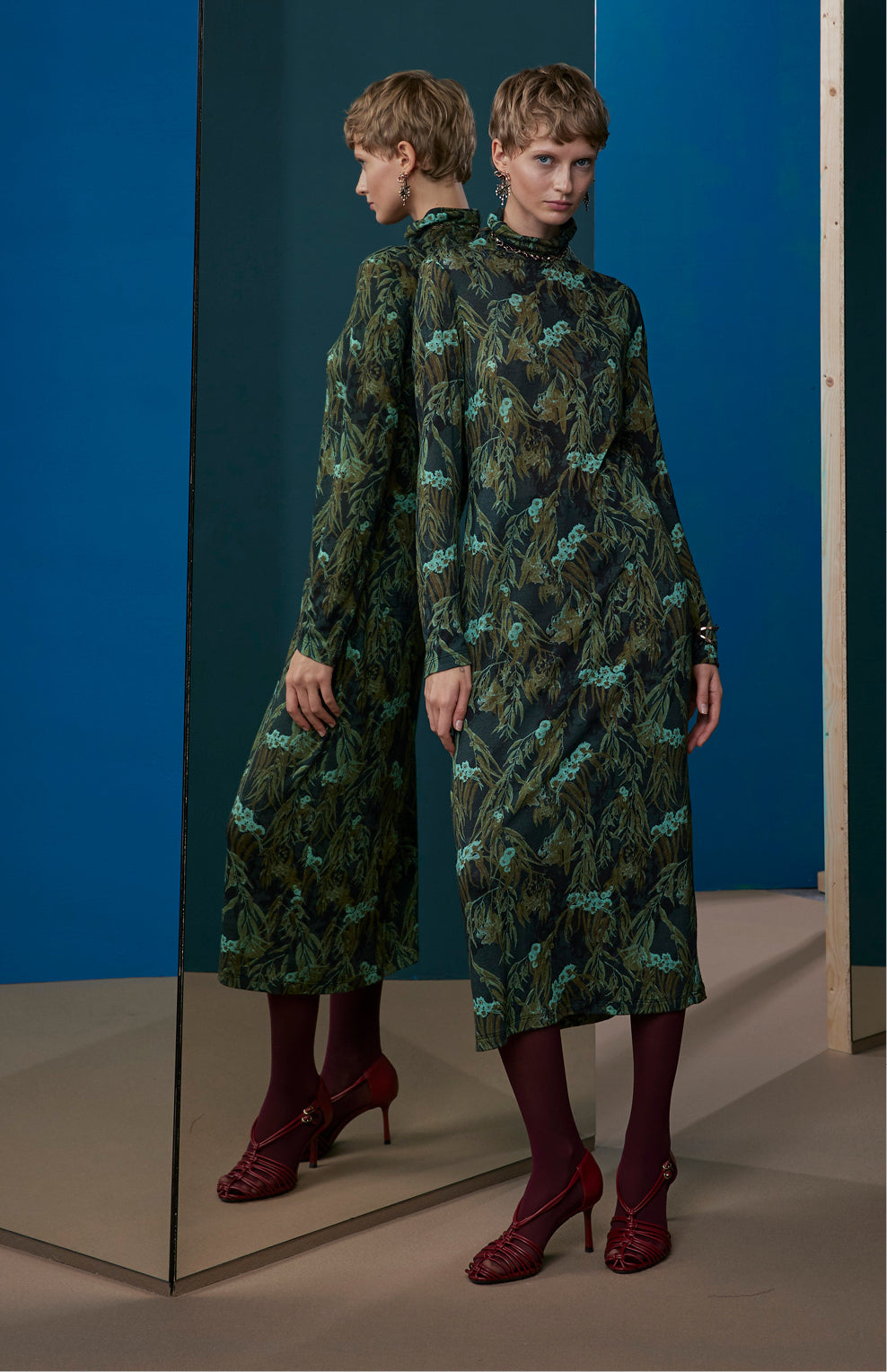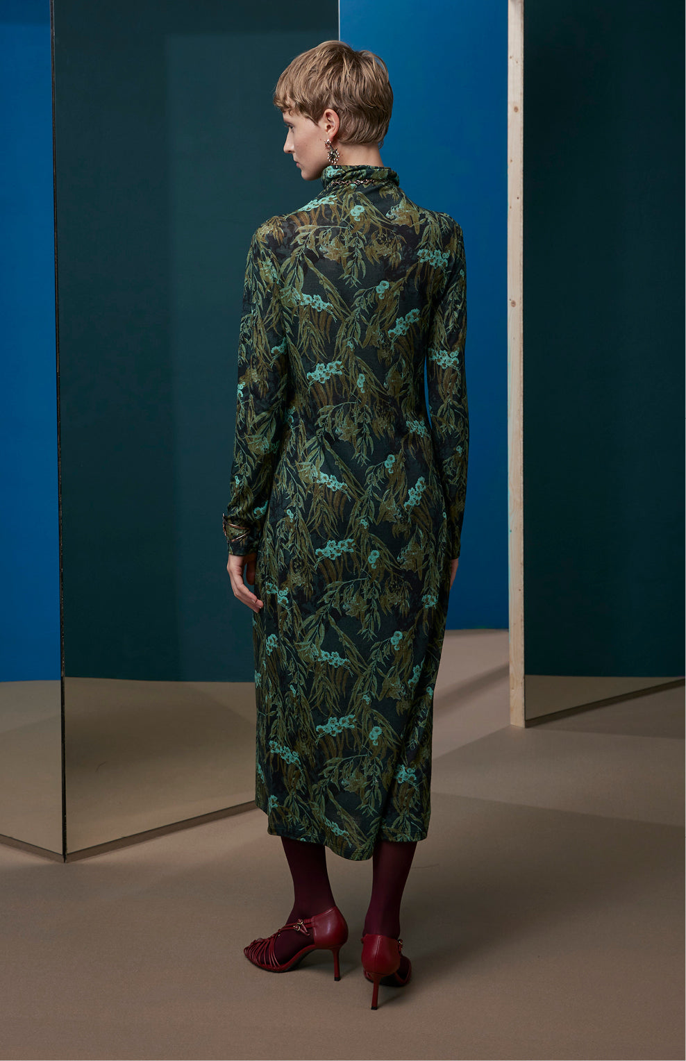 FW25-V023 Vestido en punto de lana estampado “Eucaliptos”