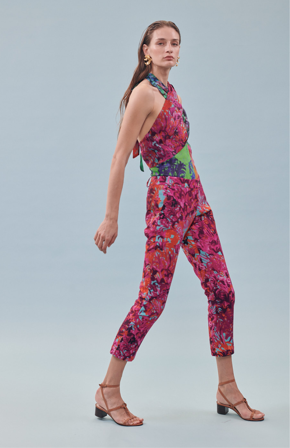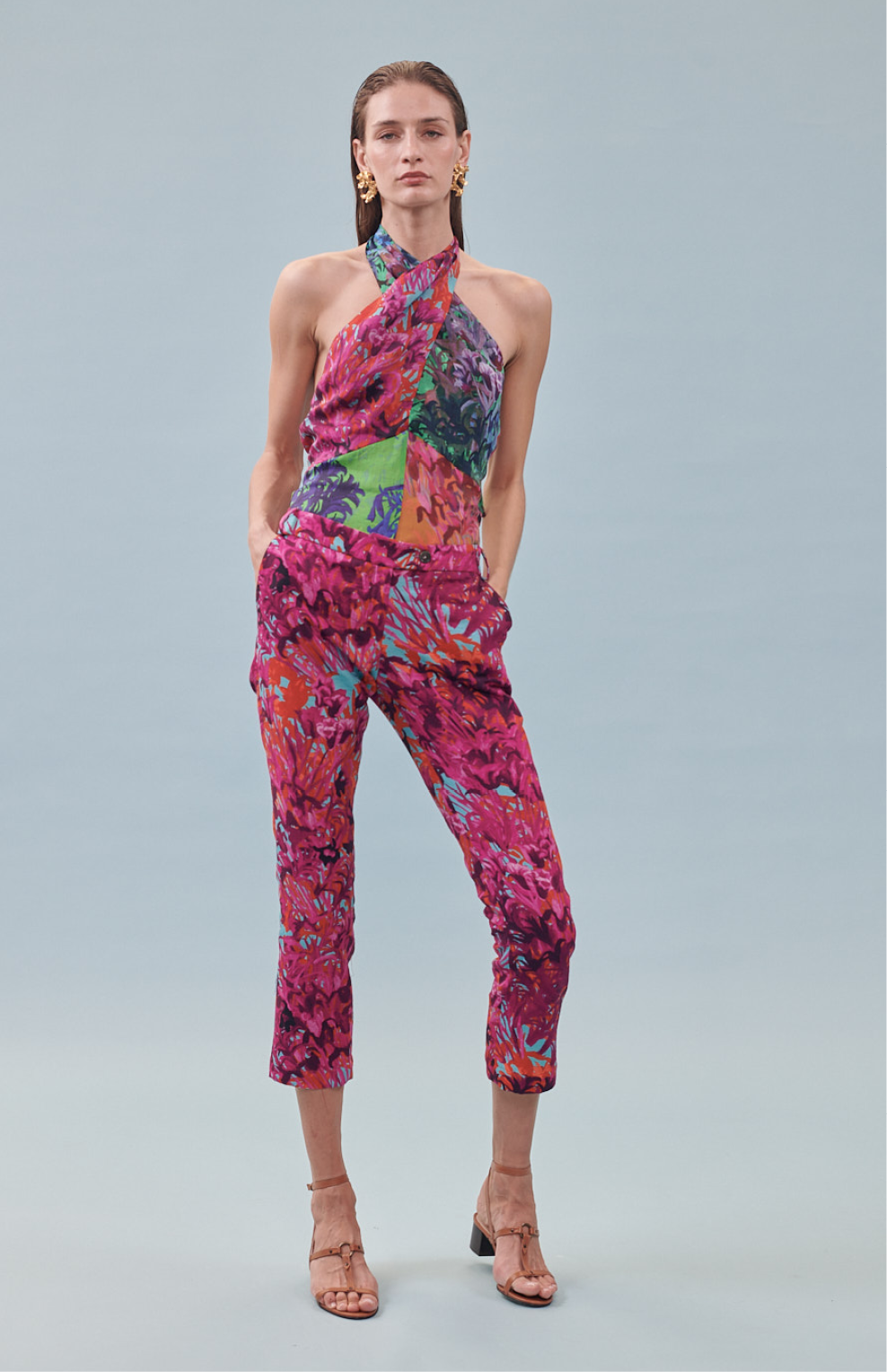Pantalón recto estampado "Campo de tulipanes"